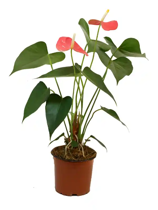 Se le conoce por sus propiedades descontaminantes, sus hojas en forma de corazón o punta de flecha hacen de esta especie una planta ideal para decorar espacios interiores. Viene en matera de vivero.