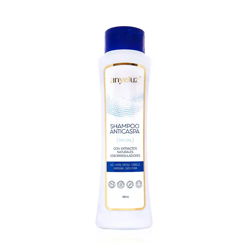 Una fórmula única para el tratamiento de la caspa y estados descamativos del cuero cabelludo la encuentras en el SHAMPOO ANTICASPA de Anyeluz, completamente sin sal con una composición a base de extractos naturales como el extracto de ají, limón, ortiga y tomillo junto con el Piritionato de Zinc, reducen la descamación, hidratando y protegiendo el cabello y el cuero cabelludo. Se puede usar en niños.