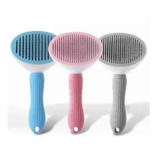 Cepillo para Mascota Con Botón para Quitar Pelusa El cepillo perfecto para mascotas pelo suelto fácil de quitar, adecuado para gatos y perros, no solo para mantener a las mascotas limpias, sino también para mantener el ambiente del hogar limpio e higiénico. Limpieza con un solo toque: simplemente presione el botón de limpieza para quitar las cerdas y límpielas, y nuestros cepillos para perros se pueden limpiar para su almacenamiento. Diseño razonable: diseño ergonómico antideslizante de silicona, agarre cómodo, fácil de controlar. El cepillo con cuentas masajea la piel de la mascota para evitar arañazos. El diseño de flexión de 60 grados de la aguja de acero inoxidable tiene un cierto grado de flexibilidad, lo que es beneficioso para prevenir enfermedades de la piel y aumentar la circulación sanguínea. Disponible en color:Gris, Azul y Rosado