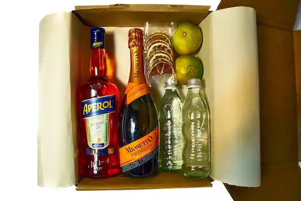 Incluye 1 Botella De Aperitivo Aperol + 1 Botella De Vino Blanco Mionetto Prosecco + 2 Unidades De Gaseosa Bretaña + Naranja Tangelo + Naranja Deshidratada | . Prohíbase El Expendio De Bebidas Embriagantes A Menores De Edad Ley 124 1994.