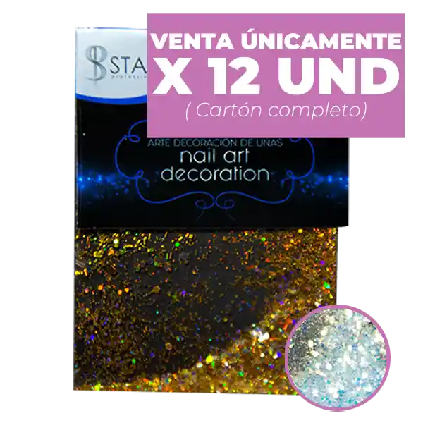 Carton de apliques por 12 unidades para la decoracion de uñas en diversos colores y motivos , perfecto para la decoracion, embellecimiento, y proteccion de las uñas acrilicas, recomendado para profesionales y principiantes en la decoracion de uñas.