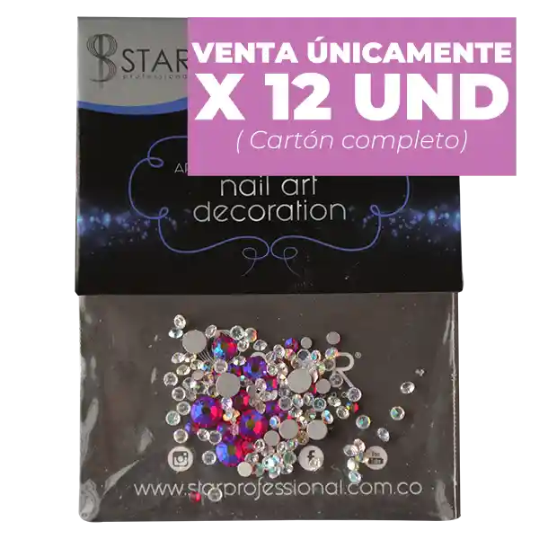 Carton de apliques por 12 unidades para la decoracion de uñas en diversos colores y motivos , perfecto para la decoracion, embellecimiento, y proteccion de las uñas acrilicas, recomendado para profesionales y principiantes en la decoracion de uñas.