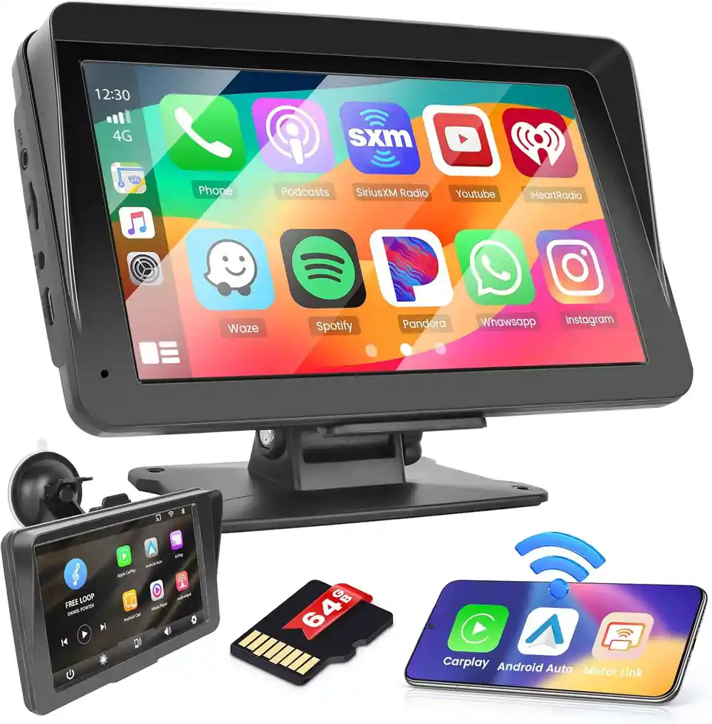 CarPlay inalámbrico | Android Auto | Control de voz: la pantalla de reproducción de automóvil Hikity de 7 pulgadas puede acceder fácilmente a mapas, música, mensajes, llamadas y más a través de la conectividad inalámbrica Bluetooth con tu teléfono. Compatible con el control de voz, que permite a los conductores utilizar sus teléfonos de forma más segura y cómoda al conducir