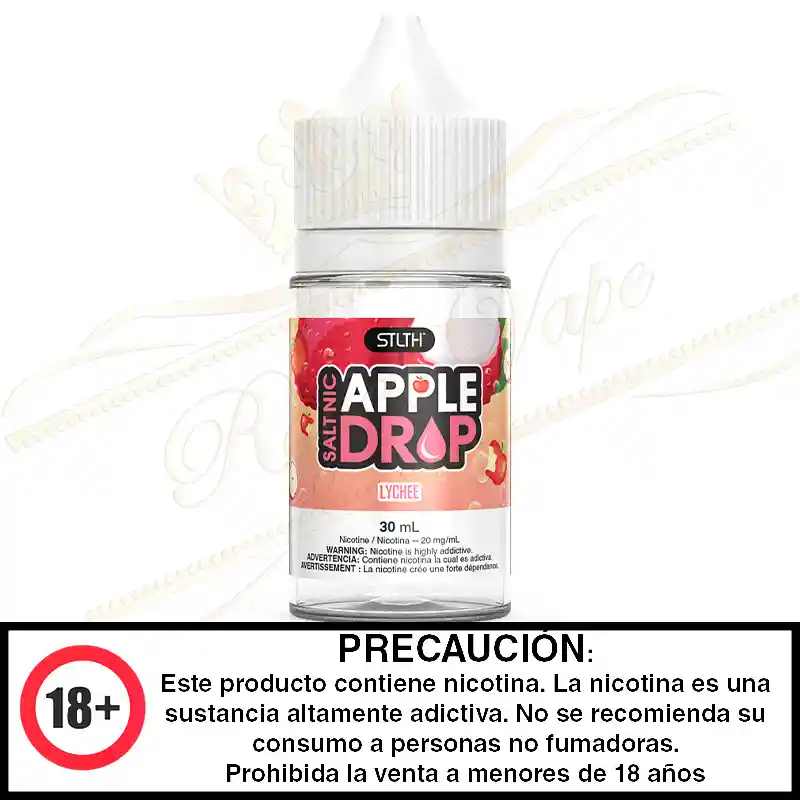 Notas exóticas de Liche mezcladas con manzana roja. Liquido de vapeo para vaporizadores recargables tipo pod, no usar en dispositivos Sub-Ohm Sales de nicotina Tamaño: 30 ml Fuerza nicotina: 50mg / 5% Proporción: 50VG / 50PG Ingredientes: Glicerina Vegetal (USP), Propilenglicol (USP), Nicotina (USP), Extractos de sabor de grado alimenticio. ADVERTENCIA Este producto contiene nicotina, una sustancia muy adictiva. No debe ser usado por mujeres embarazadas o personas con problemas respiratorios, no se recomienda su uso a no fumadores, mantener fuera del alcance de niños y mascotas, en caso de accidente consulte a su médico. ESTE PRODUCTO PUEDE SER PELIGROSO Y PERJUDICIAL PARA LA SALUD. Recuerda si no fumas no vepees Vapear no es un juego ni una moda. Prohibida su venta a menores de edad. Prohibida la venta a menores de edad. Producto nocivo para la salud que contiene nicotina, sustancia altamente adictiva. Antes de consumir consulte las indicaciones y contraindicaciones de uso