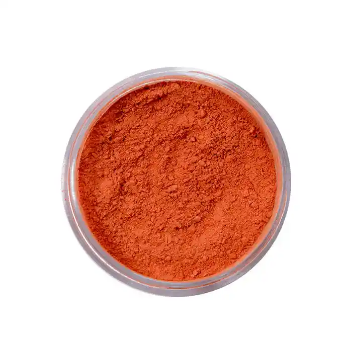 Polvo suelto en color coral, perfecto para sellar el maquillaje