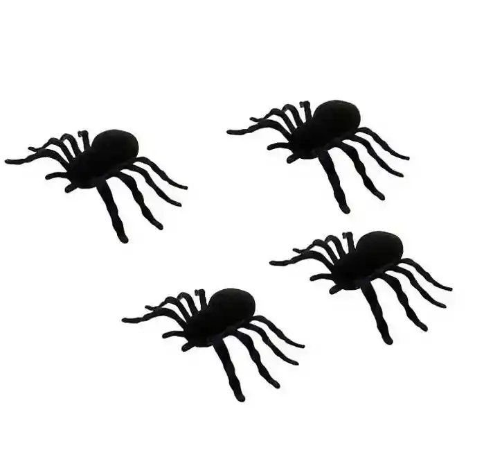 "Arañas plásticas color negro X 4 Unidades Ideal para decorar tus ambientes en esta temporada de halloween. La medida de cada araña es 9x12 Cm aproximadamente"