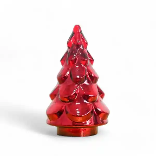 Árbol de Navidad con un acabado brillante en color rojo, con un diseño en capas que asemeja las ramas de un abeto.