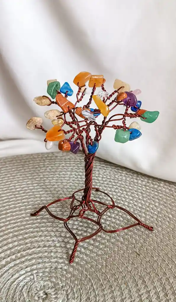 El Árbol de la Vida con Todos los Tipos de Cuarzos y base en forma de mandala es una obra de arte excepcional que combina la diversidad y la belleza curativa de los cristales con la espiritualidad y la armonía del mandala. Este árbol, meticulosamente elaborado a mano, presenta ramas de alambre que sostienen una variada colección de cuarzos, cada uno seleccionado por sus propiedades únicas y beneficiosas para el bienestar físico, emocional y espiritual. En la base, diseñada en forma de mandala, se entrelazan patrones geométricos que simbolizan la totalidad del universo y la conexión con lo divino. Este diseño no solo añade una dimensión estética significativa, sino que también refuerza la intención espiritual y energética del árbol. Los diferentes tipos de cuarzos, como el cuarzo rosa para el amor y la compasión, la amatista para la claridad mental y la protección, y el citrino para la prosperidad y la energía positiva, entre otros, trabajan en conjunto para crear una sinfonía de equilibrio y bienestar. Este Árbol de la Vida con Todos los Tipos de Cuarzos y base en forma de mandala es perfecto para aquellos que buscan una integración profunda de la belleza natural con la espiritualidad en su entorno. Ideal para el hogar, la oficina o como un regalo significativo, esta pieza no solo embellece el espacio, sino que también actúa como un poderoso talismán de armonía, protección y crecimiento espiritual. Con su diseño artesanal y su profunda simbología, el árbol representa la unión de la diversidad y la unidad en el camino hacia la plenitud y el equilibrio interior.