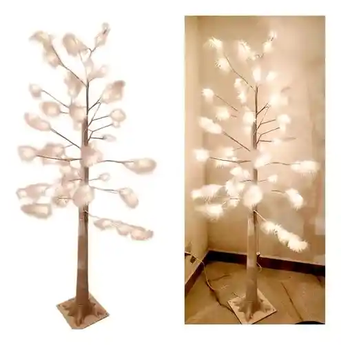 Arbol Luces Luz Led Plumas Navidad Chamizo Flores 1.50