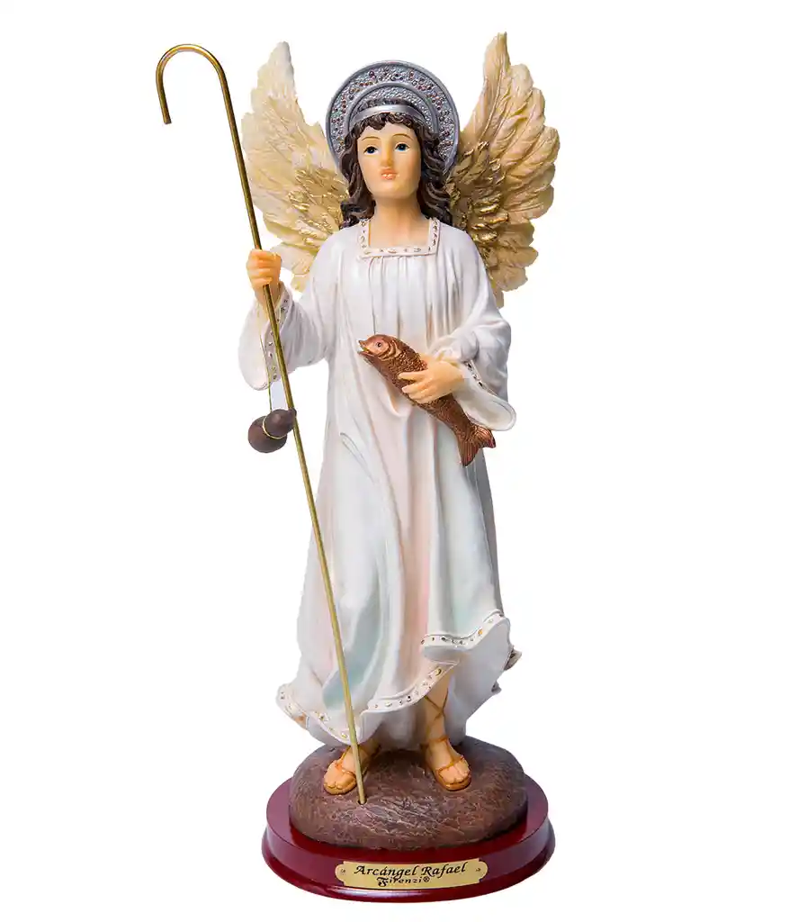 "Hermosa y decorativa figura del Arcángel Rafael Material: Marmolina Italiana Medidas: 20 cm Marca: FIRENZI 100 % Nuevo Excelente calidad "
