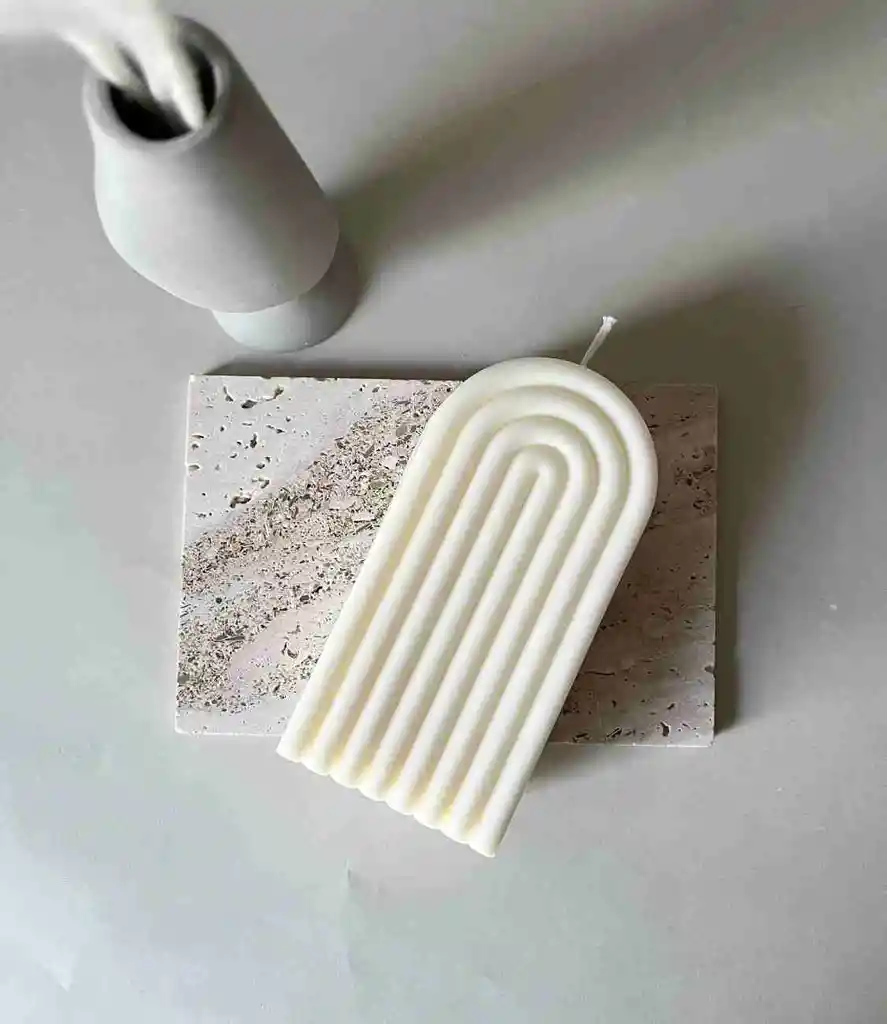 Arch Mid es una pieza geométrica que hace juego en cualquier espacio, bien sea minimalista o ecléctico. Siempre se lleva todas las miradas! Escultura de arco en cera vegetal, ilumina y decora tus espacios. Amable con el medio ambiente.
