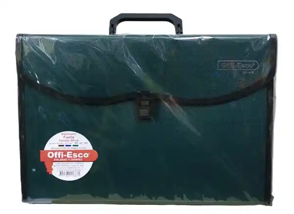 Tamaño oficio, tamaño 39 x 26,3 x 2.7 cm, expandible con 13 bolsillos, borde reforzado y cosido en lona, manija y broche resistentes.