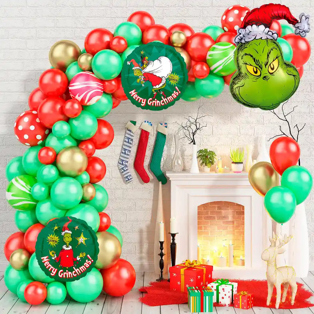 *********************GLOBOS Y PELUCHES MASMELO********************* ————————–Somos Mercado Líder Platinum———————— Te damos toda la asesoría para que tú puedas armar tu propio arco Por tu compra te llevas: 1 Globo el grinch 65*45cms 2 Globos circular de feliz navidad 45*45cms 35 Globos verde fashion R12 30cms 15 Globos verde fashion R5 13cms 25 Globos rojo R12 30cms 15 Globos rojo R5 13cms 5 Globos dorado cromado R12 30cms 5 Globos dorado cromado R5 13cms 2 Globos rojo polka R12 30cms 2 Globo verde agata R12 30cms 1 Globo rosado agata R12 30cms Total 108 globos 1 Cinta de arco 5 metros 1 Pegatina 100 puntos adhesivos *No incluye fondo decorativo no está disponible. *Los globos se entregan desinflados, tu compra no incluye el montaje ni la decoración, el servicio de armado no lo tenemos disponible. sin embargo te damos todas las instrucciones para hacer de modo profesional. Si deseas adicionar otros artículos a tu compra puedes escribirnos, recuerda que Somos Globos y Peluches Masmelo Si necesitas variación en los colores, colocar un número, más globos o realizar otros cambios en el diseño original escríbenos para ver si podemos hacerlo. Tenemos todo lo necesario para tus decoraciones, somos lo último en tendencias mundiales decorativas. Tenemos disponible: Vasos, platos, manteles, guirnaldas, cubiertos, globos de todo tipo, números, letreros, vela, Etc. Puedes encontrar los artículos de nuestra tienda en el siguiente link, copia y pega, si no encuentras lo que necesitas escríbenos: https://www.rappi.com.co/tiendas/900280040-globosypeluchesmasmelo-mt-enc/decoracion-para-fiestas/globos-y-bombas