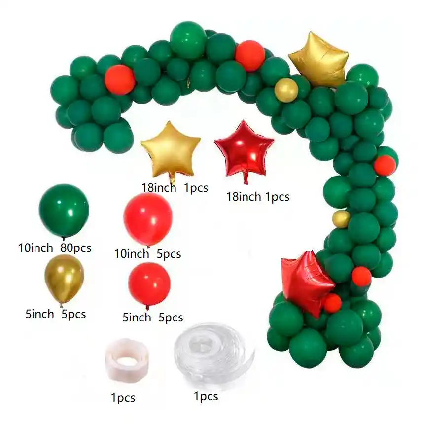 *********************GLOBOS Y PELUCHES MASMELO********************* ————————–Somos Mercado Líder Platinum———————— Te damos toda la asesoría para que tú puedas armar tu propio arco Por tu compra te llevas: 1 Globos estrella roja 45*45cms 1 Globo estrella dorada 45*45cms 80 Globos verde selva R12 30cms 5 Globos rojo R12 30cms 5 Globos rojo R5 13cms 5 Globo dorado cromado R5 13cms Total 97 globos 1 Cinta de arco 5 metros 1 Pegatina 100 puntos adhesivos *No incluye fondo decorativo no está disponible. *Los globos se entregan desinflados, tu compra no incluye el montaje ni la decoración, el servicio de armado no lo tenemos disponible. sin embargo te damos todas las instrucciones para hacer de modo profesional. Si deseas adicionar otros artículos a tu compra puedes escribirnos, recuerda que Somos Globos y Peluches Masmelo Si necesitas variación en los colores, colocar un número, más globos o realizar otros cambios en el diseño original escríbenos para ver si podemos hacerlo. Tenemos todo lo necesario para tus decoraciones, somos lo último en tendencias mundiales decorativas. Tenemos disponible: Vasos, platos, manteles, guirnaldas, cubiertos, globos de todo tipo, números, letreros, vela, Etc. Puedes encontrar los artículos de nuestra tienda en el siguiente link, copia y pega, si no encuentras lo que necesitas escríbenos: https://www.rappi.com.co/tiendas/900280040-globosypeluchesmasmelo-mt-enc/decoracion-para-fiestas/globos-y-bombas