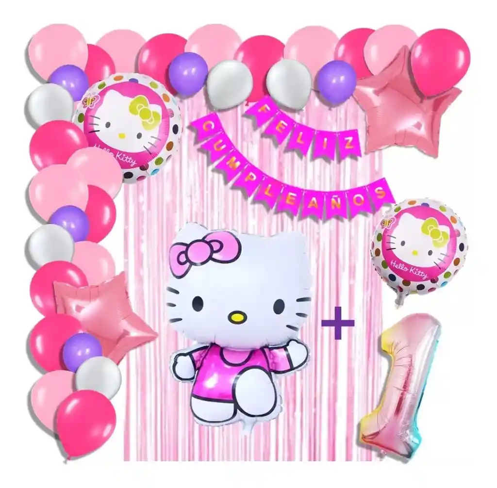 *********************GLOBOS Y PELUCHES MASMELO********************* Por tu compra te llevas. 2 Cortina oro rosa 1×2 metros 100 Globos surtidos: rosado, fucsia, morado blanco 30cm y 13cm R12 y R6 colores iguales a la foto suficientes para un arco orgánico de globos de 5 metros 2 Globo circular temática Kitty 45x45cm 1 Globo Kitty 90x70cm 2 Globo estrella rosado 45x45cm 1 guirnalda feston Feliz cumpleaños 2 metros de largo 1 Globo Número Tornasol segun tu elección del 1 al 9 altura 82 cm 7 metros de nylon para amarrar globos 1 Cinta de 100 Puntos Adhesivos *Los globos se entregan desinflados, tu compra no incluye el montaje ni la decoración, el servicio de armado no lo tenemos disponible. sin embargo te damos todas las instrucciones para hacer de modo profesional. Si deseas adicionar otros articulos a tu compra puedes escribirnos, recuerda que Somos Globos y Peluches Masmelo Si necesitas variación en los colores, colocar un número, más globos o realizar otros cambios en el diseño original escribenos para ver si podemos hacerlo. Tenemos todo lo necesario para tus decoraciones, somos lo último en tendencias mundiales decorativas. Tenemos disponible: Vasos, platos, manteles, guirnaldas, cubiertos, globos de todo tipo, números, letreros, vela, Etc. Puedes encontrar los articulos de nuestra tienda en el siguiente link, copia y pega, si no encuentas lo que necesitas escribenos: https://www.rappi.com.co/tiendas/900280040-globosypeluchesmasmelo-mt-enc/decoracion-para-fiestas/globos-y-bombas