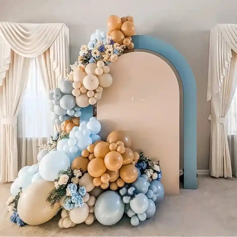 *********************GLOBOS Y PELUCHES MASMELO********************* Por tu compra te llevas: 1 Globo arena 45cm 2 Globo azul pastel 45 cm 45 Globo azul pastel 30 cm 35 Globo azul pastel 13 cm 36 Globo café 30 cm 35 Globo arena 30 cm 30 Globo arena 13 cm 1 Cinta para hacer arcos 5 metros 1 Cinta de 100 puntos adhesivos *Los globos se entregan desinflados, tu compra no incluye el montaje ni la decoración, el servicio de armado no lo tenemos disponible. sin embargo te damos todas las instrucciones para hacer de modo profesional. Si deseas adicionar otros artículos a tu compra puedes escribirnos, recuerda que Somos Globos y Peluches Masmelo Si necesitas variación en los colores, colocar un número, más globos o realizar otros cambios en el diseño original escríbenos para ver si podemos hacerlo. Tenemos todo lo necesario para tus decoraciones, somos lo último en tendencias mundiales decorativas. Tenemos disponible: Vasos, platos, manteles, guirnaldas, cubiertos, globos de todo tipo, números, letreros, vela, Etc. Puedes encontrar los artículos de nuestra tienda en el siguiente link, copia y pega, si no encuentras lo que necesitas escríbenos: https://www.rappi.com.co/tiendas/900280040-globosypeluchesmasmelo-mt-enc/decoracion-para-fiestas/globos-y-bombas