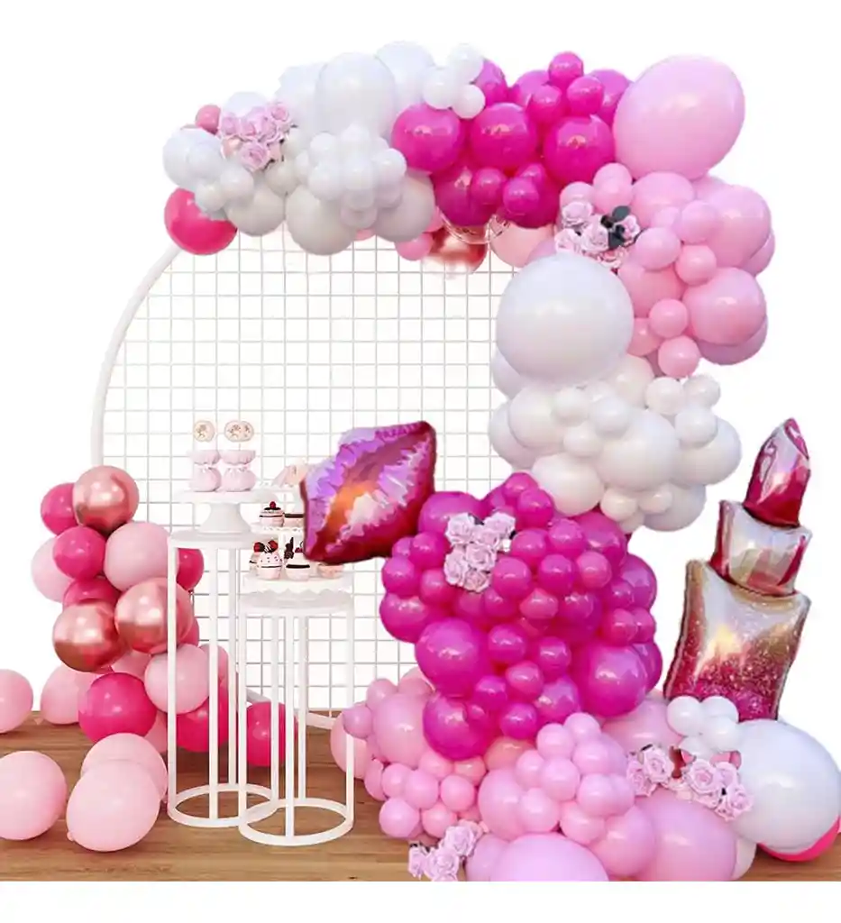 *********************GLOBOS Y PELUCHES MASMELO********************* --------------------------Somos Mercado Líder Platinum------------------------ Por tu compra te llevas. 1 Globo kiss 55x45cm 1 Globo labial 65x30 cm 1 Globo blanco 45 cm 1 Globo rosado 45 cm 30 Globo rosado pastel 45 cm 30 Globo rosado pastel 13 cm 25 Globo rosado pastel 30 cm 20 Globo blanco 13 cm 25 Globo blanco 30 cm 8 Globo oro rosa cromado 30 cm 30 Globo fucsia 30 cm 25 Globo fucsia 13 cm 1 Cinta arco para globos 5 metros 1 Cinta de 100 puntos adhesivos *Los globos se entregan desinflados, tu compra no incluye el montaje ni la decoración, el servicio de armado no lo tenemos disponible. sin embargo te damos todas las instrucciones para hacer de modo profesional. Si deseas adicionar otros artículos a tu compra puedes escribirnos, recuerda que Somos Globos y Peluches Masmelo ;) Si necesitas variación en los colores, colocar un número, más globos o realizar otros cambios en el diseño original escríbenos para ver si podemos hacerlo. Tenemos todo lo necesario para tus decoraciones, somos lo último en tendencias mundiales decorativas. Tenemos disponible: Vasos, platos, manteles, guirnaldas, cubiertos, globos de todo tipo, números, letreros, vela, Etc. Puedes encontrar los artículos de nuestra tienda en el siguiente link, copia y pega, si no encuentas lo que necesitas escríbenos: https://www.rappi.com.co/tiendas/900280040-globosypeluchesmasmelo-mt-enc/decoracion-para-fiestas/globos-y-bombas - En ciudades fuera de Bogotá despachamos para el mismo día si compras antes de las 11AM (no incluye festivos) - En Bogotá despachamos para el mismo día, si haces el pedido antes de las 4PM (no incluye festivos)