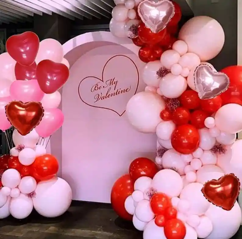 *********************GLOBOS Y PELUCHES MASMELO********************* Por tu compra te llevas: 2 Globo corazón oro rosa 45 cm 2 Globo rojo corazón 45 cm 6 Globo rojo látex forma de corazón 30 cm 4 Globo rosado pastel 45 cm 2 Globo rojo 45 cm 40 Globo rosado pastel 30 cm 20 Globo rosado pastel 13 cm 20 Globo rojo 30 cm 20 Globo rojo 30 cm 1 Mil figuras para miniarco 1 Cinta para hacer arcos 1 Cinta de 100 puntos adhesivos *Los globos se entregan desinflados, tu compra no incluye el montaje ni la decoración, el servicio de armado no lo tenemos disponible. sin embargo te damos todas las instrucciones para hacer de modo profesional. Si deseas adicionar otros artículos a tu compra puedes escribirnos, recuerda que Somos Globos y Peluches Masmelo Si necesitas variación en los colores, colocar un número, más globos o realizar otros cambios en el diseño original escríbenos para ver si podemos hacerlo. Tenemos todo lo necesario para tus decoraciones, somos lo último en tendencias mundiales decorativas. Tenemos disponible: Vasos, platos, manteles, guirnaldas, cubiertos, globos de todo tipo, números, letreros, vela, Etc. Puedes encontrar los artículos de nuestra tienda en el siguiente link, copia y pega, si no encuentras lo que necesitas escríbenos: https://www.rappi.com.co/tiendas/900280040-globosypeluchesmasmelo-mt-enc/decoracion-para-fiestas/globos-y-bombas