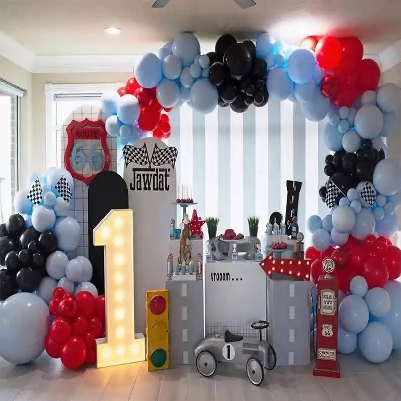 *********************GLOBOS Y PELUCHES MASMELO********************* Por tu compra te llevas: 1 Globo azul pastel 45 cm 25 Globo negro 30 cm 15 Globo negro 13 cm 20 Globo rojo 30 cm 15 Globo rojo 13 cm 45 Globo azul pastel 30 cm 30 Globo azul pastel 13 cm 2 Mil figuras para hacer mini arco 1 Cinta para hacer arcos 1 Cinta de 100 puntos adhesivos *Los globos se entregan desinflados, tu compra no incluye el montaje ni la decoración, el servicio de armado no lo tenemos disponible. sin embargo te damos todas las instrucciones para hacer de modo profesional. Si deseas adicionar otros artículos a tu compra puedes escribirnos, recuerda que Somos Globos y Peluches Masmelo Si necesitas variación en los colores, colocar un número, más globos o realizar otros cambios en el diseño original escríbenos para ver si podemos hacerlo. Tenemos todo lo necesario para tus decoraciones, somos lo último en tendencias mundiales decorativas. Tenemos disponible: Vasos, platos, manteles, guirnaldas, cubiertos, globos de todo tipo, números, letreros, vela, Etc. Puedes encontrar los artículos de nuestra tienda en el siguiente link, copia y pega, si no encuentras lo que necesitas escríbenos: https://www.rappi.com.co/tiendas/900280040-globosypeluchesmasmelo-mt-enc/decoracion-para-fiestas/globos-y-bombas