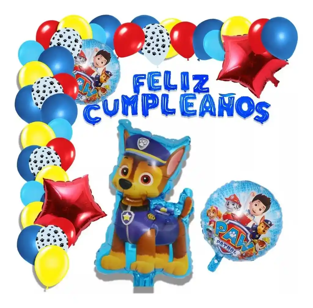 *********************GLOBOS Y PELUCHES MASMELO********************* Por tu compra te llevas. 100 Globos surtidos: amarillo, azul rey, azul pastel, rojo, blanco con patitas de perro 30cm y 13cm R12 y R6 colores iguales a la foto suficientes para un arco orgánico de globos de 5 metros 2 Globo circular temática patrulla canina 45x45cm 1 Globo Perro Chase 65×45 cm 2 Globo estrella rojo 45x45cm 1 Globo letrero feliz cumpleaños 40 cm de altura 7 metros de nylon para amarrar globos 1 Cinta de 100 Puntos Adhesivos *Los globos se entregan desinflados, tu compra no incluye el montaje ni la decoración, el servicio de armado no lo tenemos disponible. sin embargo te damos todas las instrucciones para hacer de modo profesional. Si deseas adicionar otros articulos a tu compra puedes escribirnos, recuerda que Somos Globos y Peluches Masmelo Si necesitas variación en los colores, colocar un número, más globos o realizar otros cambios en el diseño original escribenos para ver si podemos hacerlo. Tenemos todo lo necesario para tus decoraciones, somos lo último en tendencias mundiales decorativas. Tenemos disponible: Vasos, platos, manteles, guirnaldas, cubiertos, globos de todo tipo, números, letreros, vela, Etc. Puedes encontrar los articulos de nuestra tienda en el siguiente link, copia y pega, si no encuentas lo que necesitas escribenos: https://www.rappi.com.co/tiendas/900280040-globosypeluchesmasmelo-mt-enc/decoracion-para-fiestas/globos-y-bombas