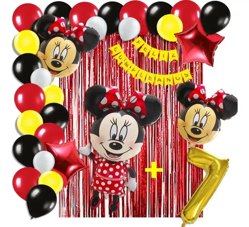 *********************GLOBOS Y PELUCHES MASMELO********************* Por tu compra te llevas. 2 Cortina Rojo 1×2 metros 100 Globos surtidos: Amarillo, negro, blanco, rojo 30cm y 13cm R12 y R6 colores iguales a la foto suficientes para un arco orgánico de globos de 5 metros 2 Globo circular temática Minnie Mouse 45x45cm 1 Globo Minnie Mouse 65×45 cm 2 Globo estrella rojo 45x45cm 1 guirnalda feston Feliz cumpleaños 2 metros de largo 1 Globo Número dorado segun tu elección del 1 al 9 altura 82 cm 7 metros de nylon para amarrar globos 1 Cinta de 100 Puntos Adhesivos *Los globos se entregan desinflados, tu compra no incluye el montaje ni la decoración, el servicio de armado no lo tenemos disponible. sin embargo te damos todas las instrucciones para hacer de modo profesional. Si deseas adicionar otros articulos a tu compra puedes escribirnos, recuerda que Somos Globos y Peluches Masmelo Si necesitas variación en los colores, colocar un número, más globos o realizar otros cambios en el diseño original escribenos para ver si podemos hacerlo. Tenemos todo lo necesario para tus decoraciones, somos lo último en tendencias mundiales decorativas. Tenemos disponible: Vasos, platos, manteles, guirnaldas, cubiertos, globos de todo tipo, números, letreros, vela, Etc. Puedes encontrar los articulos de nuestra tienda en el siguiente link, copia y pega, si no encuentas lo que necesitas escribenos: https://www.rappi.com.co/tiendas/900280040-globosypeluchesmasmelo-mt-enc/decoracion-para-fiestas/globos-y-bombas