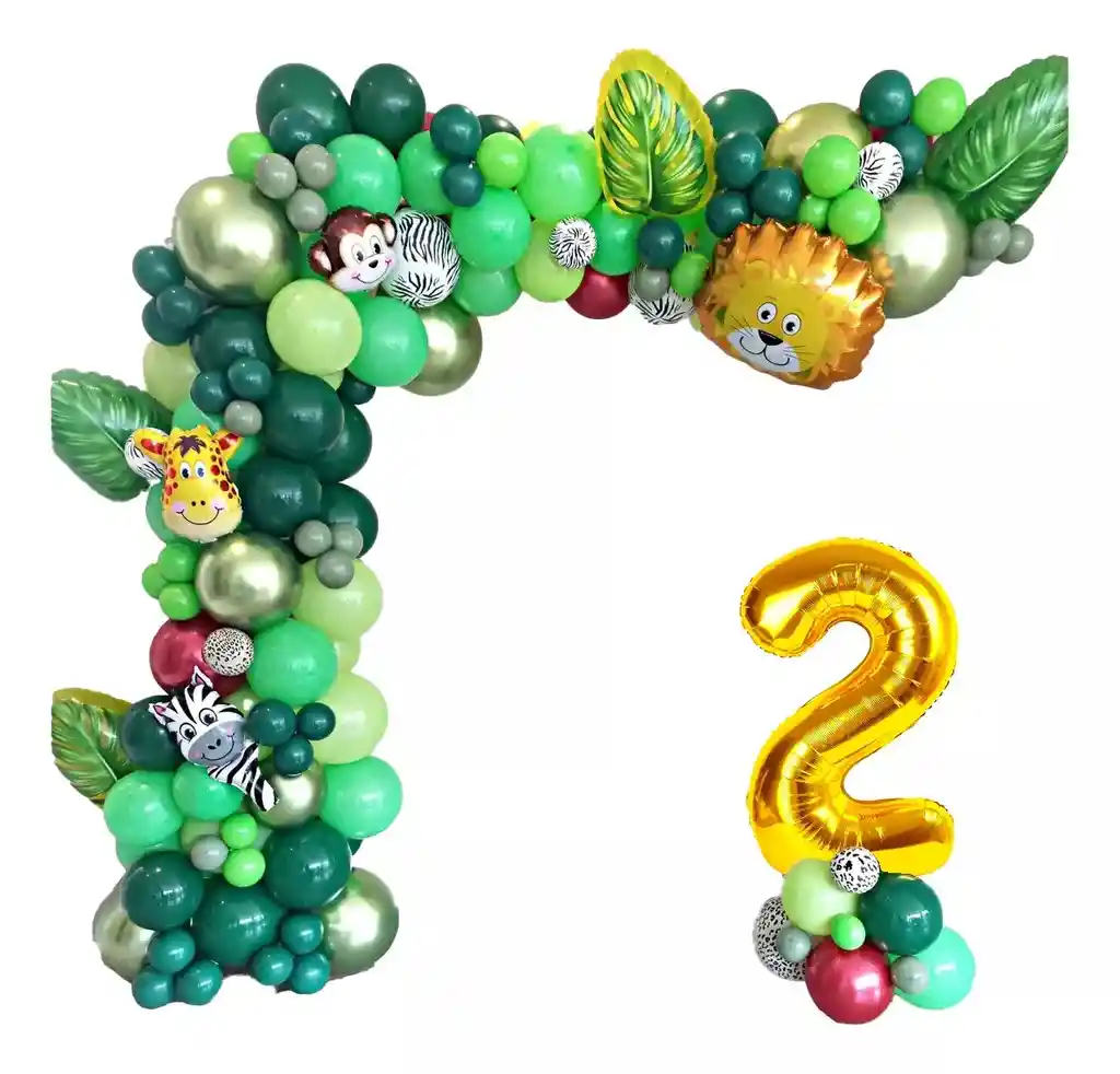 *********************GLOBOS Y PELUCHES MASMELO********************* Somos Mercado Lider Platinum Te damos toda la asesoria para que tú puedas armar tu propio arco Por tu compra te llevas: 1 Globo número dorado de 82cm (segun tu elección) 4 Globo hoja 50x35cm 1 Globo cabeza león 45x45cm 3 Globo cabezas de animales 33x25cm 6 Globo animal print 13cm 2 Globo animal print 30cm 5 Globo vinotinto 30cm 3 Globo milfiguras 260 10 Globo cromado verde champaña 30cm 25 Globo verde selva 30cm 25 Globo verde selva 13 cm 15 Globo verde eucalipto 13cm 20 Globo verde lima 30cm 15 Globo verde lima 13cm 25 Globo verde fashion 30cm 1 Cinta de arco 5 metros 1 Cinta de 100 puntos adhesivos *No incluye el montaje ni la decoración, el servicio de armado no lo tenemos disponible. sin embargo te damos todas las instrucciones para hacer de modo profesional. Si deseas adicionar otros articulos a tu compra puedes escribirnos, recuerda que Somos Globos y Peluches Masmelo Si necesitas variación en los colores, colocar un número, más Globos o realizar otros cambios en el diseño original escribenos para ver si podemos hacerlo. Tenemos todo lo necesario para tus decoraciones, somos lo último en tendencias mundiales decorativas. Tenemos disponible: Vasos, platos, manteles, guirnaldas, cubiertos, Globos de todo tipo, números, letreros, vela, Etc. Puedes encontrar los articulos de nuestra tienda en el siguiente link, copia y pega, si no encuentas lo que necesitas escribenos: En ciudades fuera de Bogotá despachamos para el mismo día si compras antes de las 11AM (no incluye festivos) En Bogotá despachamos para el mismo día, si haces el pedido antes de las 4PM (no incluye festivos)