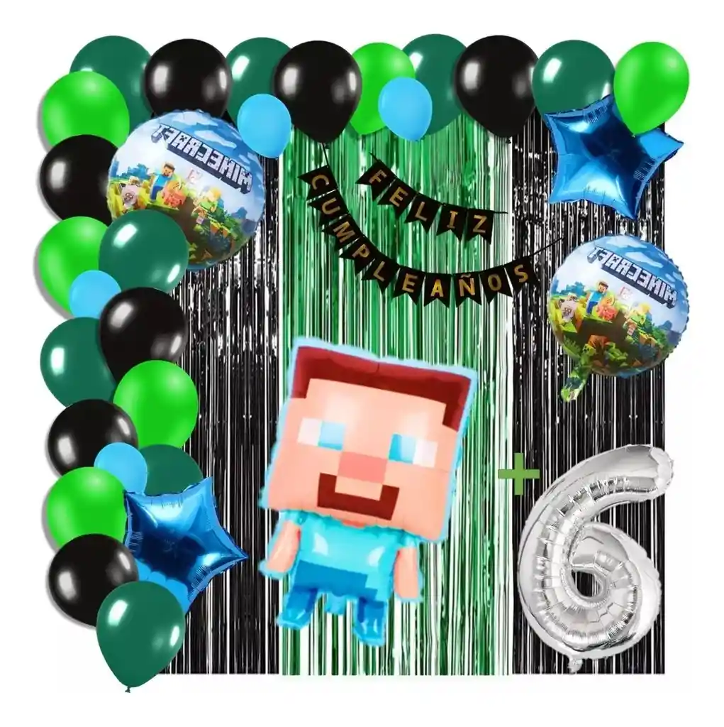 *********************GLOBOS Y PELUCHES MASMELO********************* Por tu compra te llevas. 2 Cortina verde negro 1×2 metros 100 Globos surtidos: negro, verde, verde selva, azul pastel 30cm y 13cm R12 y R6 colores iguales a la foto suficientes para un arco orgánico de globos de 5 metros 2 Globo circular temática video juegos 45x45cm 1 Globo S te ve 65×45 cm 2 Globo estrella azul 45x45cm 1 guirnalda feston Feliz cumpleaños 2 metros de largo 1 Globo Número plateado segun tu elección del 1 al 9 altura 82 cm 7 metros de nylon para amarrar globos 1 Cinta de 100 Puntos Adhesivos *Los globos se entregan desinflados, tu compra no incluye el montaje ni la decoración, el servicio de armado no lo tenemos disponible. sin embargo te damos todas las instrucciones para hacer de modo profesional. Si deseas adicionar otros articulos a tu compra puedes escribirnos, recuerda que Somos Globos y Peluches Masmelo Si necesitas variación en los colores, colocar un número, más globos o realizar otros cambios en el diseño original escribenos para ver si podemos hacerlo. Tenemos todo lo necesario para tus decoraciones, somos lo último en tendencias mundiales decorativas. Tenemos disponible: Vasos, platos, manteles, guirnaldas, cubiertos, globos de todo tipo, números, letreros, vela, Etc. Puedes encontrar los articulos de nuestra tienda en el siguiente link, copia y pega, si no encuentas lo que necesitas escribenos: https://www.rappi.com.co/tiendas/900280040-globosypeluchesmasmelo-mt-enc/decoracion-para-fiestas/globos-y-bombas