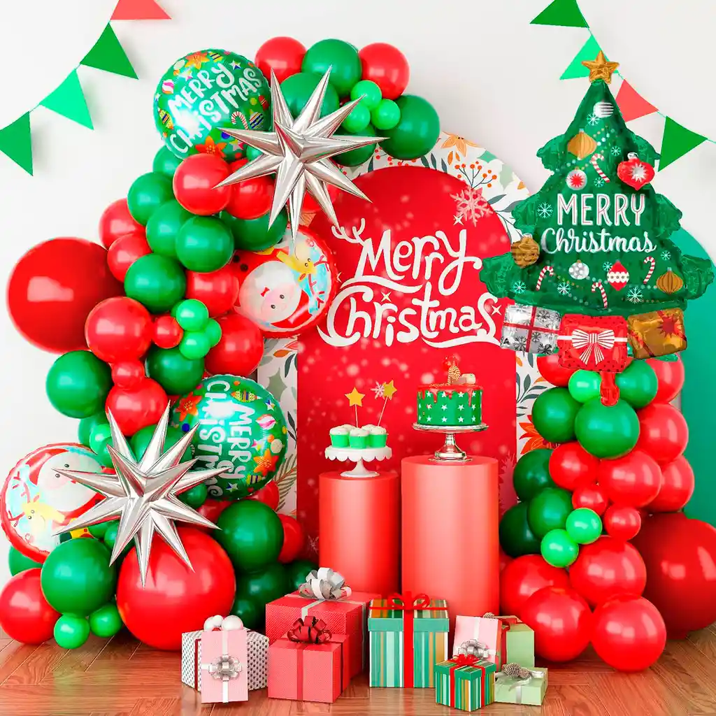 *********************GLOBOS Y PELUCHES MASMELO********************* ————————-Somos Mercado Líder Platinum———————— Te damos toda la asesoría para que tú puedas armar tu propio arco Por tu compra te llevas: 1 Globo árbol 65x45cm 2 Globo estrella explosiva 60x60cm 4 Globo circular navidad 45x45cm 3 Globo rojo 45 cm 30 Globo rojo 30 cm 15 Globo rojo 13 cm 25 Globo verde Fashion 30 cm 15 Globo verde Fashion 13 cm 30 Globo verde selva 30 cm Accesorios: 1 Cinta de arco 5 metros 1 Pegatina 100 puntos adhesivos *No incluye fondo decorativo no está disponible. * Los globos se entregan desinflados, tu compra no incluye el montaje ni la decoración, el servicio de armado no lo tenemos disponible. sin embargo te damos todas las instrucciones para hacer de modo profesional. Si deseas adicionar otros artículos a tu compra puedes escribirnos, recuerda que Somos Globos y Peluches Masmelo Si necesitas variación en los colores, colocar un número, más globos o realizar otros cambios en el diseño original escríbenos para ver si podemos hacerlo. Tenemos todo lo necesario para tus decoraciones, somos lo último en tendencias mundiales decorativas. Tenemos disponible: Vasos, platos, manteles, guirnaldas, cubiertos, globos de todo tipo, números, letreros, vela, Etc. Puedes encontrar los artículos de nuestra tienda en el siguiente link, copia y pega, si no encuentras lo que necesitas escríbenos: https://www.rappi.com.co/tiendas/900280040-globosypeluchesmasmelo-mt-enc/decoracion-para-fiestas/globos-y-bombas