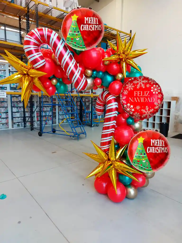 *********************GLOBOS Y PELUCHES MASMELO********************* ————————–Somos Mercado Líder Platinum———————— Te damos toda la asesoría para que tú puedas armar tu propio arco Por tu compra te llevas: 3 Globo circular navidad 45x45cm 3 Globo estrella explosiva 60x60cm 2 Globo bastón navidad 80x45cm 15 Globo verde cromado 13 cm 10 Globo verde cromado 30 cm 40 Globo rojo 30 cm 15 Globo rojo 13 cm 15 Globo dorado cromado 30 cm Accesorios: -Punto de pegamento: 1 rollo -Cinta de cadena: 1 rollo *Los globos se entregan desinflados, tu compra no incluye el montaje ni la decoración, el servicio de armado no lo tenemos disponible. sin embargo te damos todas las instrucciones para hacer de modo profesional. Si deseas adicionar otros artículos a tu compra puedes escribirnos, recuerda que Somos Globos y Peluches Masmelo Si necesitas variación en los colores, colocar un número, más globos o realizar otros cambios en el diseño original escríbenos para ver si podemos hacerlo. Tenemos todo lo necesario para tus decoraciones, somos lo último en tendencias mundiales decorativas. Tenemos disponible: Vasos, platos, manteles, guirnaldas, cubiertos, globos de todo tipo, números, letreros, vela, Etc. Puedes encontrar los artículos de nuestra tienda en el siguiente link, copia y pega, si no encuentras lo que necesitas escríbenos: https://www.rappi.com.co/tiendas/900280040-globosypeluchesmasmelo-mt-enc/decoracion-para-fiestas/globos-y-bombas