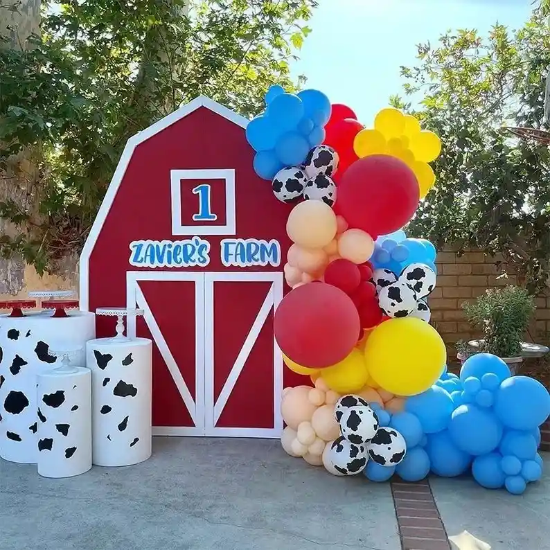 *********************GLOBOS Y PELUCHES MASMELO********************* Por tu compra te llevas: 12 Globo estampados de vaca 30 cm 2 Globo rojo 45 cm 1 Globo amarillo 45 cm 35 Globo azul celeste 30 cm 15 Globo azul celeste 13 cm 25 Globo crema 30 cm 20 Globo rojo 30 cm 10 Globo rojo 13 cm 15 Globo amarillo 30 cm 15 Globo amarillo 13 cm 1 Cinta para hacer arcos 1 Cinta de 100 puntos adhesivos *Los globos se entregan desinflados, tu compra no incluye el montaje ni la decoración, el servicio de armado no lo tenemos disponible. sin embargo te damos todas las instrucciones para hacer de modo profesional. Si deseas adicionar otros artículos a tu compra puedes escribirnos, recuerda que Somos Globos y Peluches Masmelo Si necesitas variación en los colores, colocar un número, más globos o realizar otros cambios en el diseño original escríbenos para ver si podemos hacerlo. Tenemos todo lo necesario para tus decoraciones, somos lo último en tendencias mundiales decorativas. Tenemos disponible: Vasos, platos, manteles, guirnaldas, cubiertos, globos de todo tipo, números, letreros, vela, Etc. Puedes encontrar los artículos de nuestra tienda en el siguiente link, copia y pega, si no encuentras lo que necesitas escríbenos: https://www.rappi.com.co/tiendas/900280040-globosypeluchesmasmelo-mt-enc/decoracion-para-fiestas/globos-y-bombas