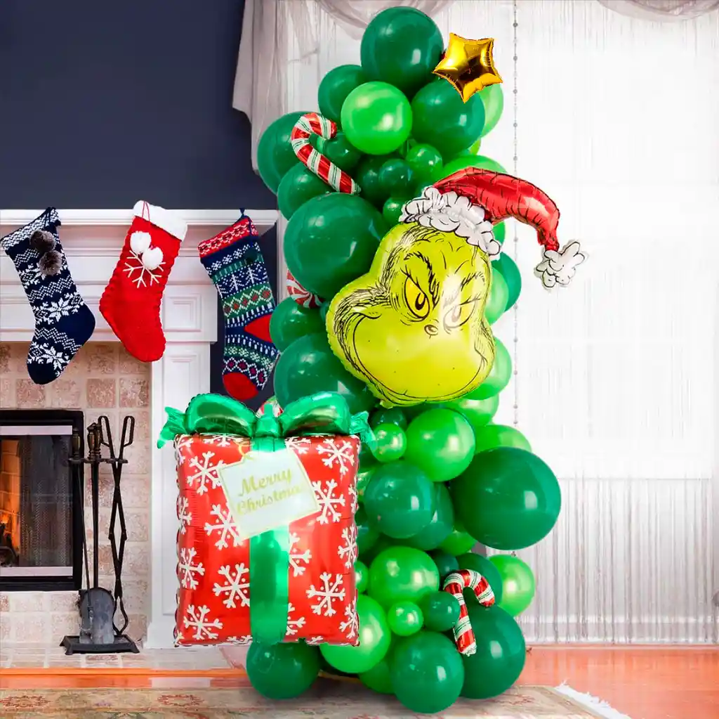 *********************GLOBOS Y PELUCHES MASMELO********************* ————————–Somos Mercado Líder Platinum———————— Te damos toda la asesoría para que tú puedas armar tu propio arco Por tu compra te llevas: 1 Globo regalo navidad 65x45cm 1 Globo Grinch 65x45cm 2 Globo bastón pequeño 45x20 cm 1 Globo estrella 25x25cm 35 Globo verde selva 30 cm 10 Globo verde selva 13 cm 25 Globo verde fashion 30 cm 10 Globo verde fashion 13 cm Accesorios: -Punto de pegamento: 1 rollo -Cinta de cadena: 1 rollo *Los globos se entregan desinflados, tu compra no incluye el montaje ni la decoración, el servicio de armado no lo tenemos disponible. sin embargo te damos todas las instrucciones para hacer de modo profesional. Si deseas adicionar otros artículos a tu compra puedes escribirnos, recuerda que Somos Globos y Peluches Masmelo Si necesitas variación en los colores, colocar un número, más globos o realizar otros cambios en el diseño original escríbenos para ver si podemos hacerlo. Tenemos todo lo necesario para tus decoraciones, somos lo último en tendencias mundiales decorativas. Tenemos disponible: Vasos, platos, manteles, guirnaldas, cubiertos, globos de todo tipo, números, letreros, vela, Etc. Puedes encontrar los artículos de nuestra tienda en el siguiente link, copia y pega, si no encuentras lo que necesitas escríbenos: https://www.rappi.com.co/tiendas/900280040-globosypeluchesmasmelo-mt-enc/decoracion-para-fiestas/globos-y-bombas
