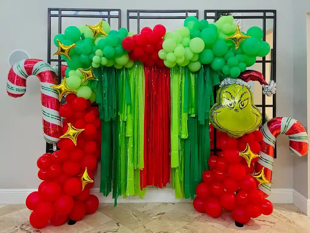 *********************GLOBOS Y PELUCHES MASMELO********************* ————————-Somos Mercado Líder Platinum———————— Te damos toda la asesoría para que tú puedas armar tu propio arco Por tu compra te llevas: 1 Globo Grinch 65x45cm 2 Globo bastón 70x30 cm 9 Globo estrella 25 cm 20 Globo rojo 30 cm 50 Globo rojo 13 cm 20 Globo verde lima 30 cm 20 Globo verde lima 13cm 30 Globo verde fashion 30 cm 15 Globo verde fashion 13 cm Accesorios: 1 Cinta de arco 5 metros 1 Pegatina 100 puntos adhesivos *No incluye fondo decorativo no está disponible. * Los globos se entregan desinflados, tu compra no incluye el montaje ni la decoración, el servicio de armado no lo tenemos disponible. sin embargo te damos todas las instrucciones para hacer de modo profesional. Si deseas adicionar otros artículos a tu compra puedes escribirnos, recuerda que Somos Globos y Peluches Masmelo Si necesitas variación en los colores, colocar un número, más globos o realizar otros cambios en el diseño original escríbenos para ver si podemos hacerlo. Tenemos todo lo necesario para tus decoraciones, somos lo último en tendencias mundiales decorativas. Tenemos disponible: Vasos, platos, manteles, guirnaldas, cubiertos, globos de todo tipo, números, letreros, vela, Etc. Puedes encontrar los artículos de nuestra tienda en el siguiente link, copia y pega, si no encuentras lo que necesitas escríbenos: https://www.rappi.com.co/tiendas/900280040-globosypeluchesmasmelo-mt-enc/decoracion-para-fiestas/globos-y-bombas