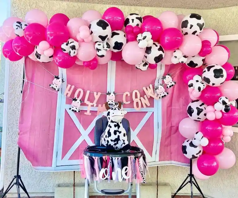 *********************GLOBOS Y PELUCHES MASMELO********************* Te damos toda la asesoria para que tú puedas armar tu propio arco Por tu compra te llevas: 15 Globo estampado de vaca 30cm 15 Globo blanco mate 13 cm 40 Globo rosado pastel 30 cm 15 Globo rosado pastel 13 cm 40 Globo fucsia 30 cm 15 Globo fucsia 13 cm 1 Cinta de arco para globos 5 metros 1 Cinta 100 puntos adhesivos * Los Globos vienen desinflados * No incluye helio * No incluye guirnalda ni accesorios de mesa *Los globos se entregan desinflados, tu compra no incluye el montaje ni la decoración, el servicio de armado no lo tenemos disponible. sin embargo te damos todas las instrucciones para hacer de modo profesional. Si deseas adicionar otros articulos a tu compra puedes escribirnos, recuerda que Somos Globos y Peluches Masmelo Si necesitas variación en los colores, colocar un número, más globos o realizar otros cambios en el diseño original escribenos para ver si podemos hacerlo. Tenemos todo lo necesario para tus decoraciones, somos lo último en tendencias mundiales decorativas. Tenemos disponible: Vasos, platos, manteles, guirnaldas, cubiertos, globos de todo tipo, números, letreros, vela, Etc. Puedes encontrar los articulos de nuestra tienda en el siguiente link, copia y pega, si no encuentas lo que necesitas escribenos: https://www.rappi.com.co/tiendas/900280040-globosypeluchesmasmelo-mt-enc/decoracion-para-fiestas/globos-y-bombas