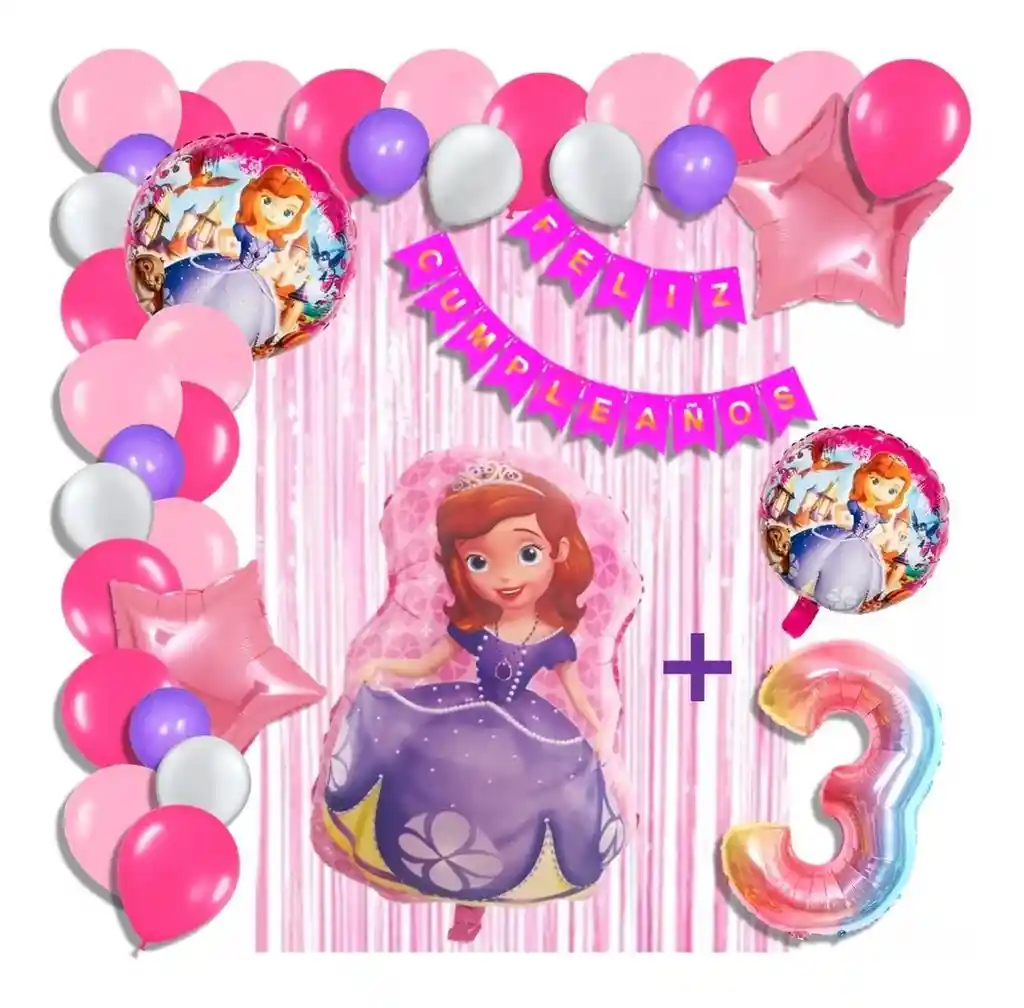Arco Kit Globos Princesa Sofia Fucsia Rosado Cortina Número # 3