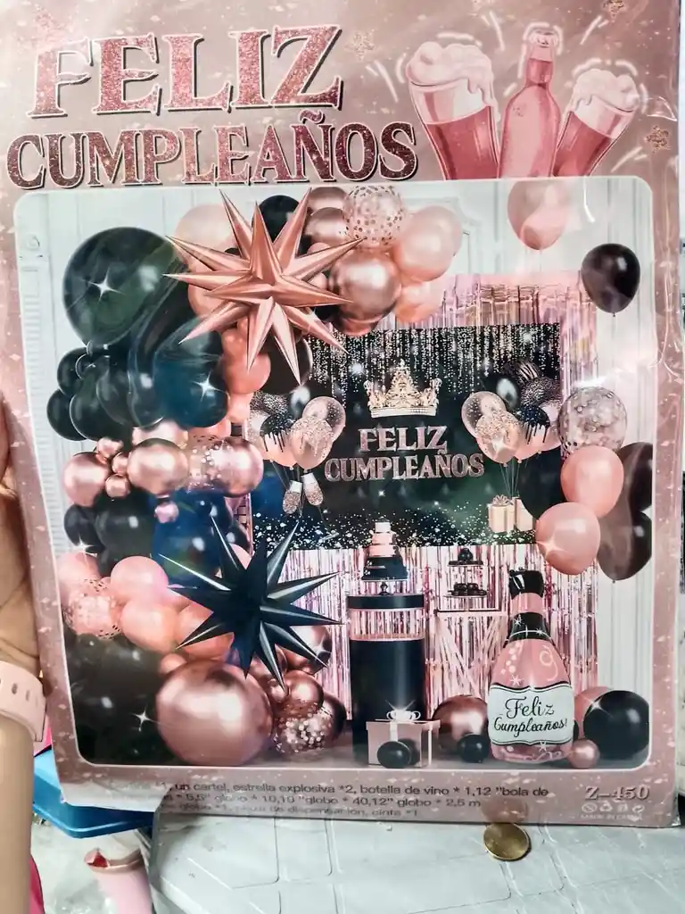 Cortina *1, un cartel, estrella explosiva *2, botella de vino * 1,12 "bola de lentejuelas * 5,5" globo * 10,10 "globo * 40,12" globo * 2,5 m cadena de globo *1, pieza de dispensación, cinta *1.