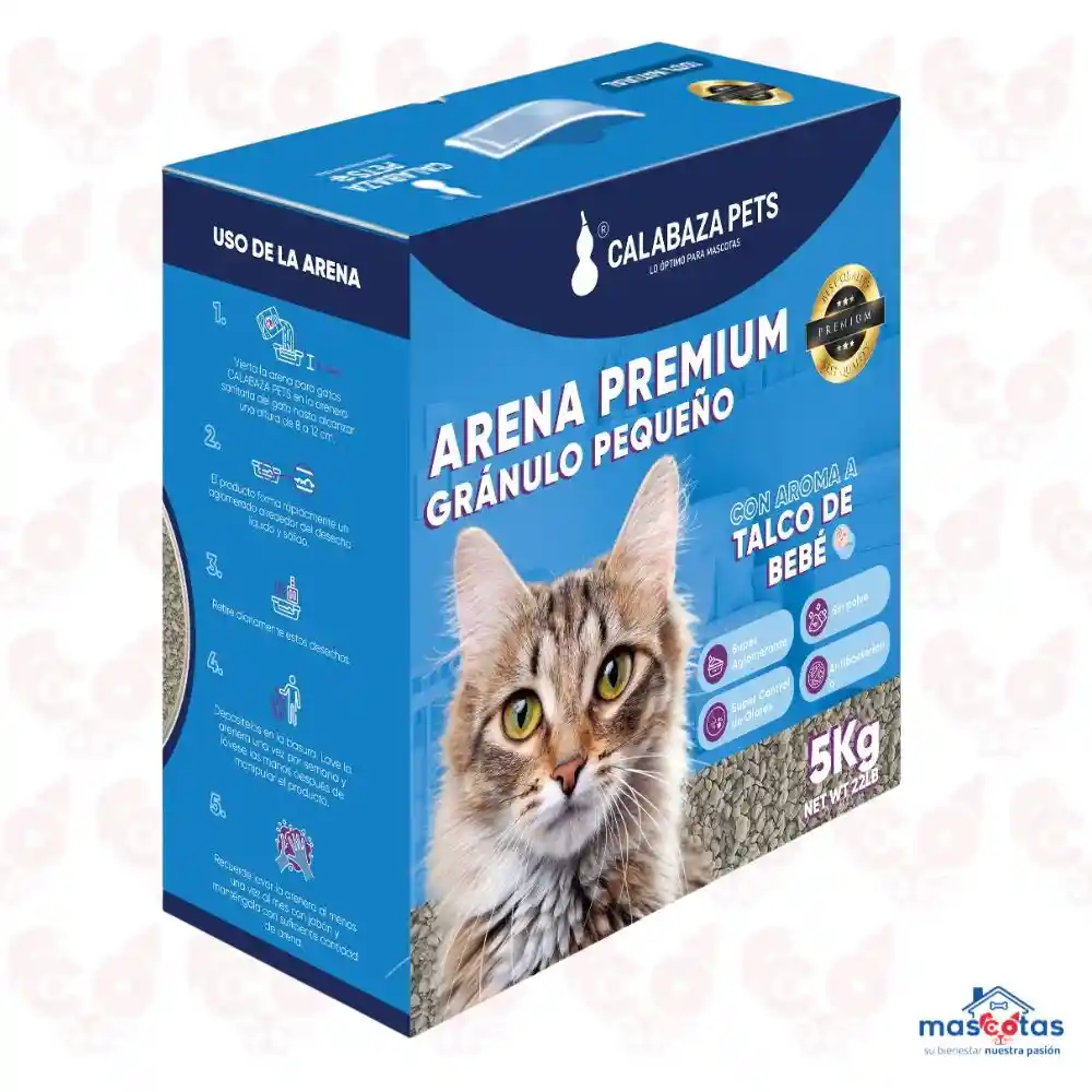 ARENA CALABAZA PREMIUN GRANULO PEQUEÑO EN CAJA X 5 KILOS