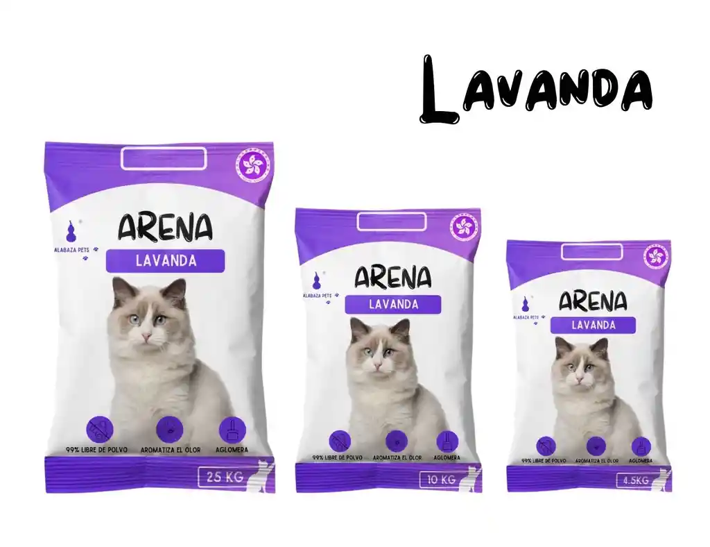 Arena Sanitaria Premium 100% Aglomerante 2% Talco Desodorizante Suave Fragancia de Vainilla o Lavanda.