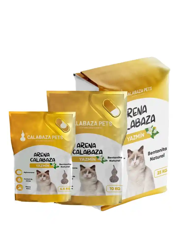 Arena sanitaria con olor a Yazmín, biodegradable, hecha con bentonita 100% natural. Ideal para absorber malos olores y mantener el ambiente limpio y fresco.