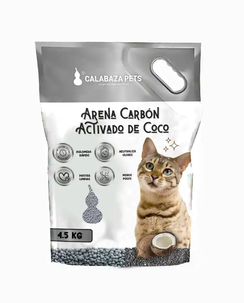 Arena Sanitaria Gato Bent Calabaza Carb Act 10 Kg. Hecho con Bentonita 100% natural, conocida por su buen rendimiento para aglomerar los desechos de los gatos.