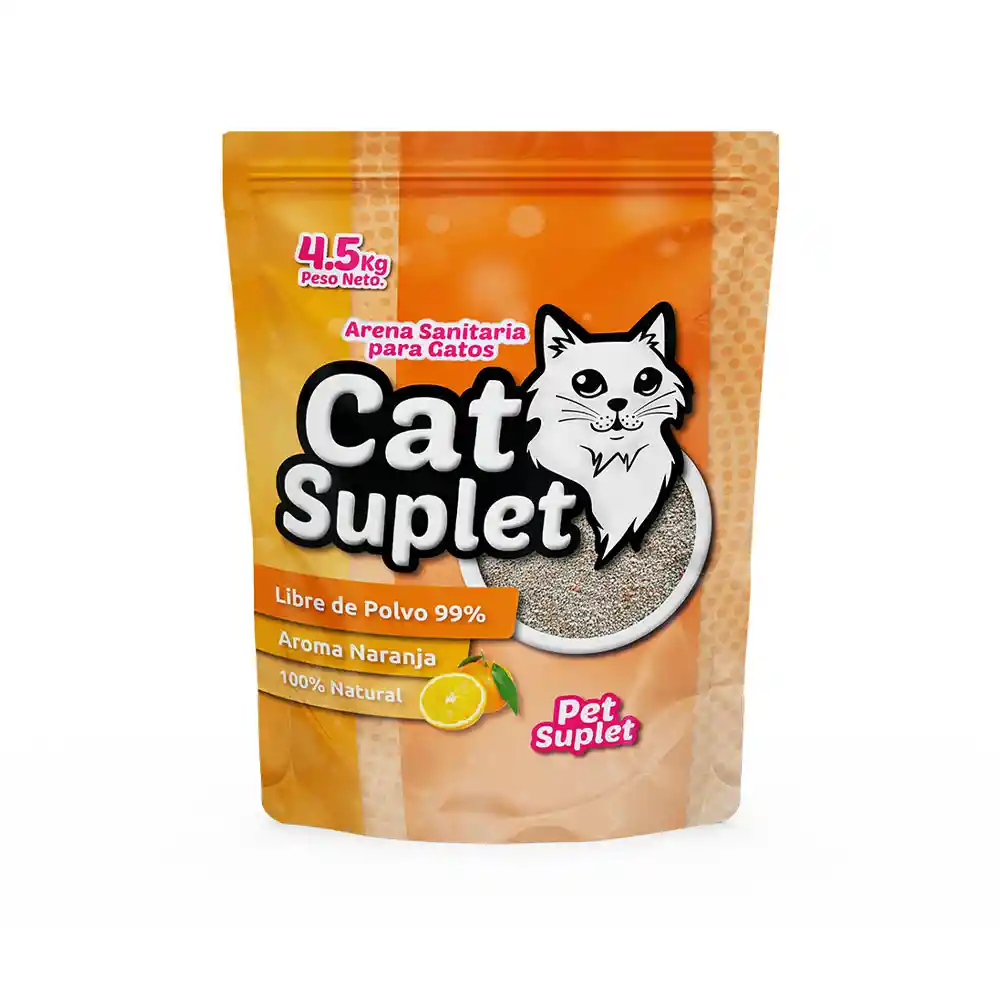 Arena Cat Suplet, aroma a naranja. Aglomerante, control de olores, 99% libre de polvo.