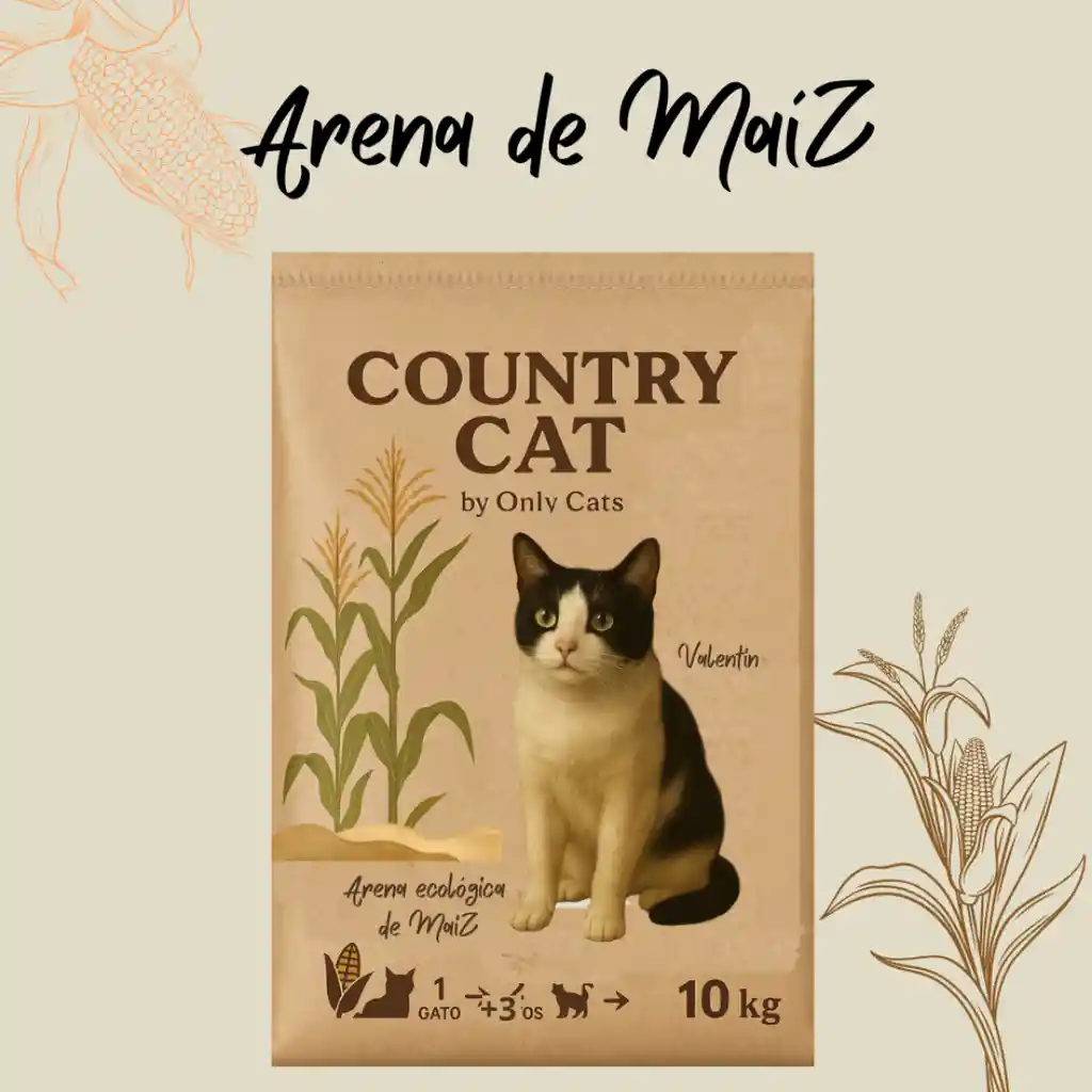 Country Cat – Valentín (Natural) Inspirada en la nobleza y autenticidad de Valentín, esta presentación ha sido creada especialmente para los amantes de lo natural y para quienes prefieren una experiencia sin ningún tipo de fragancia añadida. Elaborada con maíz 100% natural, ofrece una aglomeración superior, atrapando y controlando los malos olores de forma eficiente. Es ecológica, hipoalergénica, biodegradable y puede reutilizarse como abono para plantas, lo que la convierte en una opción amigable con el medio ambiente y segura para tu gato. Sin aromas, sin extractos, sin añadidos: solo la pureza de un producto que respeta al máximo la sensibilidad de tu felino y que garantiza frescura de manera natural. Porque sabemos que cada familia y cada gato es único, nos encanta ofrecer esta alternativa sencilla, práctica y rendidora.
