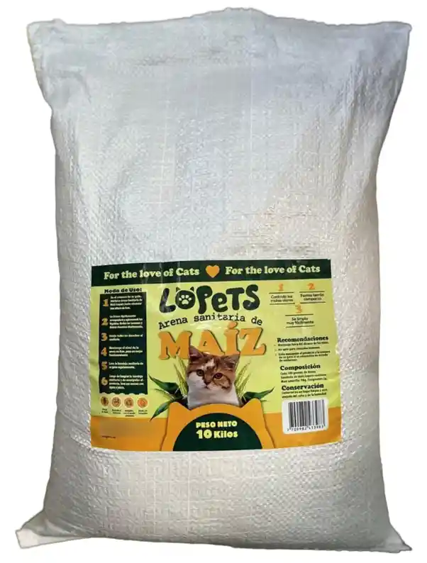 La Arena de Maíz Lopets para gatos con delicioso aroma a limón, es 100% ecológica, es elaborada a base de maíz, es biodegradable, súper absorbente, inhibe al instante los olores, hipoalergénica, libre de polvo y además encapsula rápidamente los líquidos. La Arena de Maíz Lopets un producto 100% colombiano, elaborado con materiales naturales, renovables y no extraídos de canteras, lo que lo hace sostenible y garantiza el cuidado del medio ambiente. BENEFICIOS: 100% Natural y amigable con el medio ambiente. Puede arrojarse al sanitario sin temor a producir taponamiento pues se deshace al contacto con el agua. Aglomera rápidamente formando un terrón compacto y resistente. Libre de polvo. Empaque resellable con zipper. COMPOSICIÓN GARANTIZADA: Maíz al 100% MODO DE USO: Vierta la Arena de Maíz Lopets en la bandeja sanitaria hasta alcanzar una altura aproximada de 4 a 6 centímetros de profundidad y distribúyala uniformemente hasta dejar una capa homogénea (no mezclar con otro tipo de arenas). Los componentes de la Arena de Maíz Lopets generan un aglomerado instantáneo al contacto con los desechos líquidos controlando el olor de la orina. Retire diariamente los desechos generados por el gato con una pala, se pueden desechar por el inodoro o utilizar como abono para plantas. Reponga la arena desechada por arena nueva (no necesita cambiar toda la arena) manteniendo la altura aconsejada. Lave con agua y jabón la bandeja sanitaria una vez a la semana.CONSERVACIÓN: En un lugar fresco, seco y fresco, fuera del alcance de niños y animales domésticos. Evite el contacto de los desechos con mujeres embarazadas. Lávese las manos después de manipular el producto.
