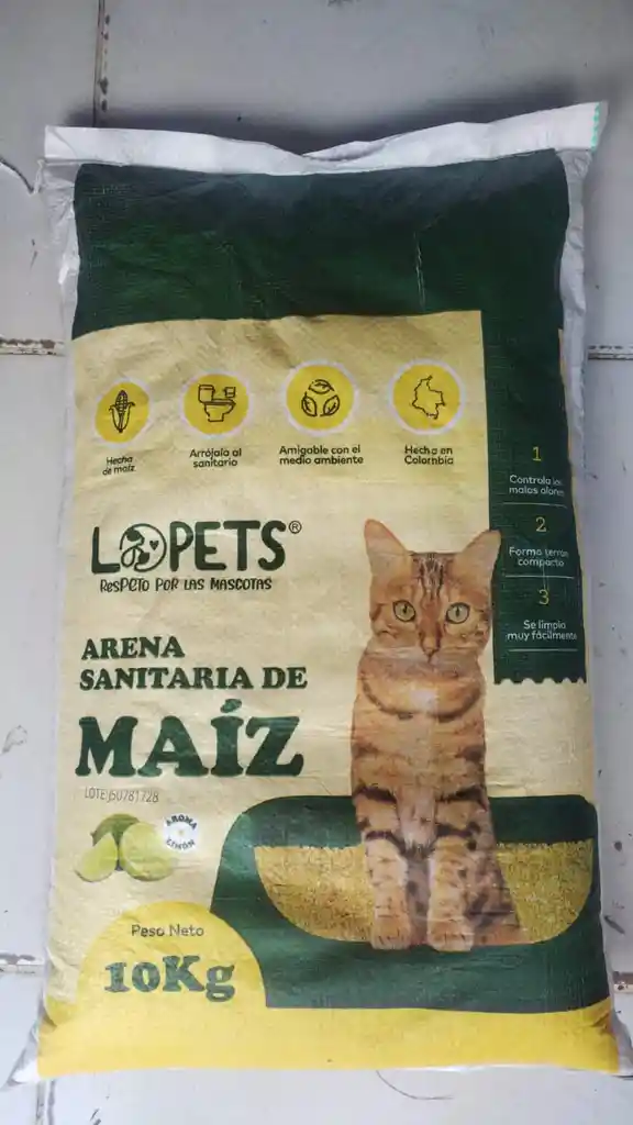 ARENA LOPETS DE MAIZ CON AROMA A LIMON X 10 KG