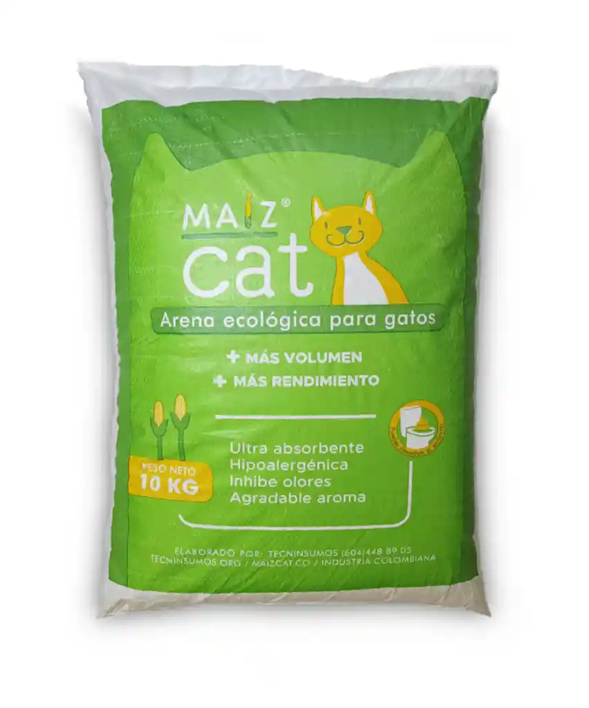 Arena de Maíz para Gatos – Maiz Cat 10 kg 🌽🐱 Mantén la bandeja de tu gato siempre limpia y fresca con Maiz Cat, la arena 100 % natural elaborada a base de maíz. Su composición ecológica ofrece alta absorción, control superior de olores y una textura suave que no irrita las patitas de tu gato. Además, es biodegradable, sin polvo y segura para el hogar, ideal para quienes buscan una opción amigable con el medio ambiente.