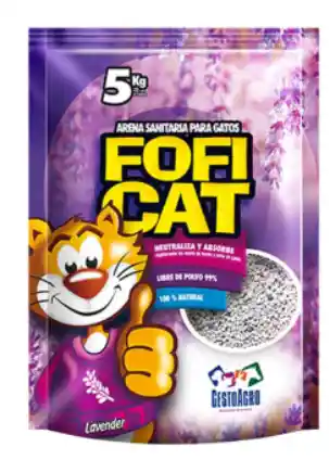 La arena para gatos Foficat es una arena con un gran poder aglomerante que se encargará de hacer más fácil la limpieza del arenero de tu gato. Su poder aglomerante es de fina granulación y se encargará de absorber por completo la humedad dentro del arenero con el fin de evitar los malos olores. Lavanda. 5 Kg.