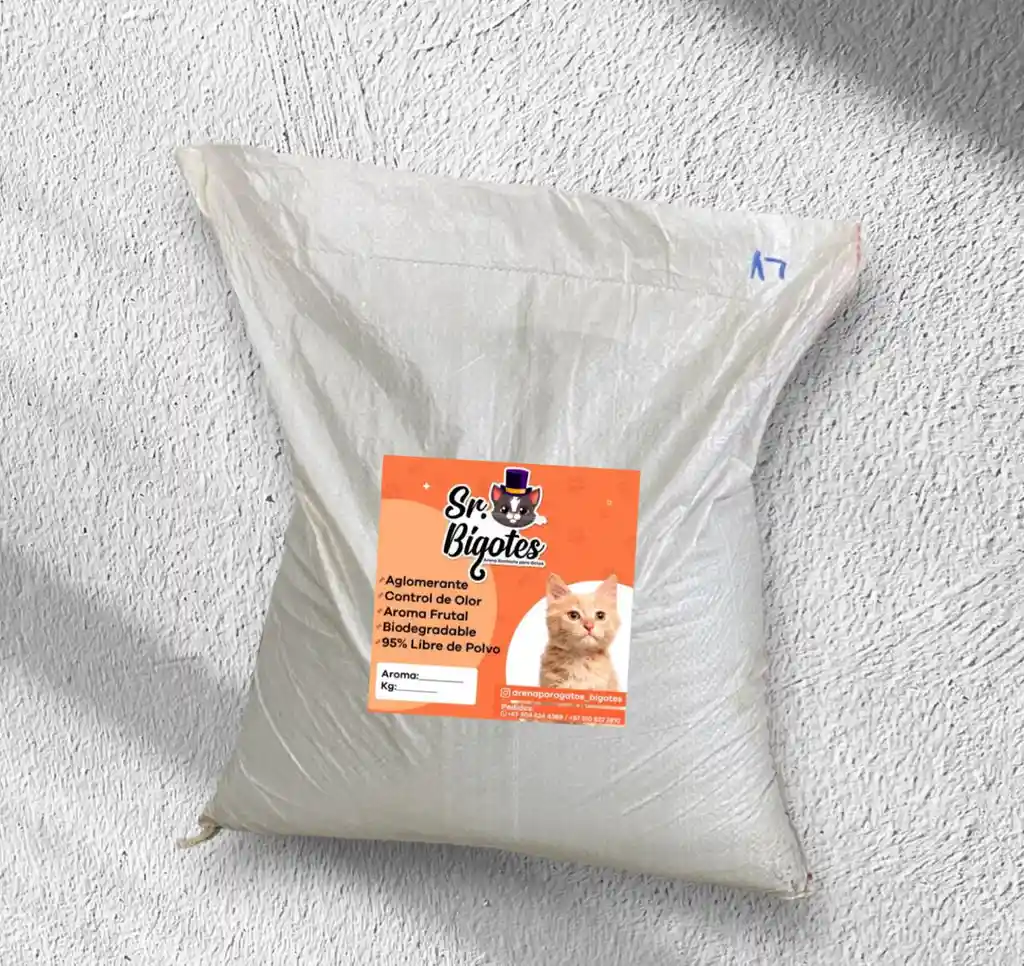 Arena sanitaria para gatos, absorbente, aglomerante, control de olor, aroma frutal, 95% libre de polvo y biodegradable.