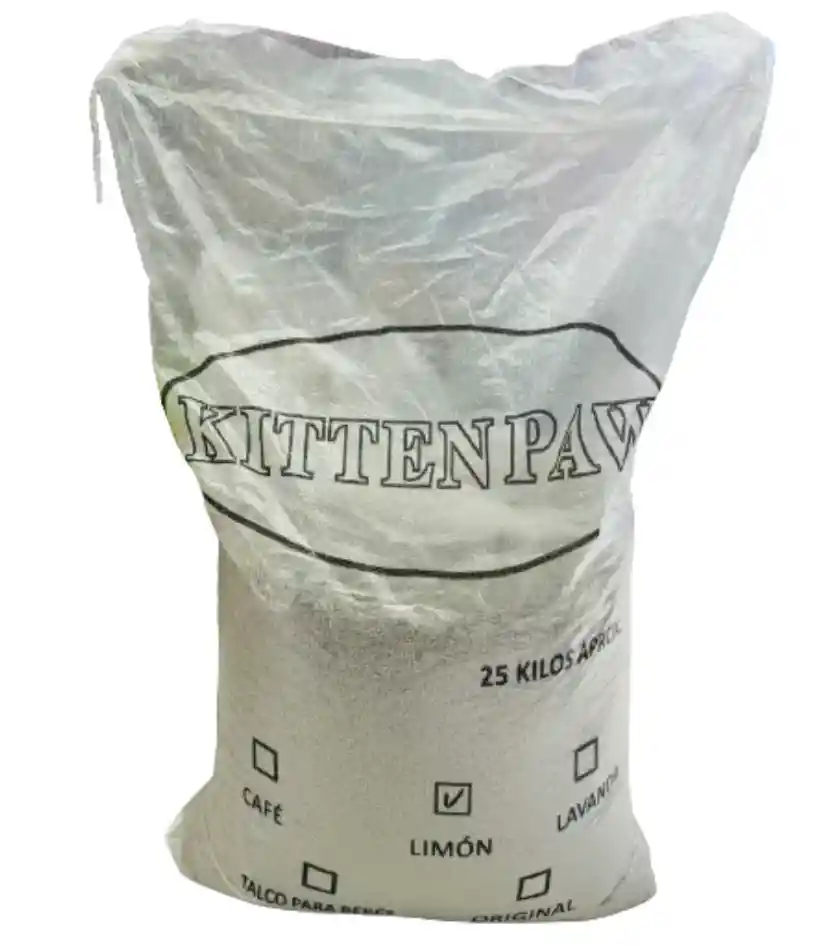 Arena kitten paw hecha de bentonita de sodio, que provee excelente control del olor y es fácil de limpiar, ya que al contacto con la orina forma bolas que son fácilmente removibles dejando el resto de la arena libre de olor y lista para volver a ser utilizada. Olor a café.