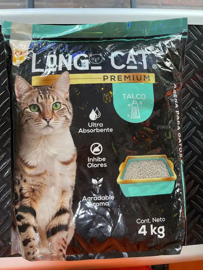 Arena para gatos tipo Premium, Bolsa x 4 kg ultra absorbente olor a talco.