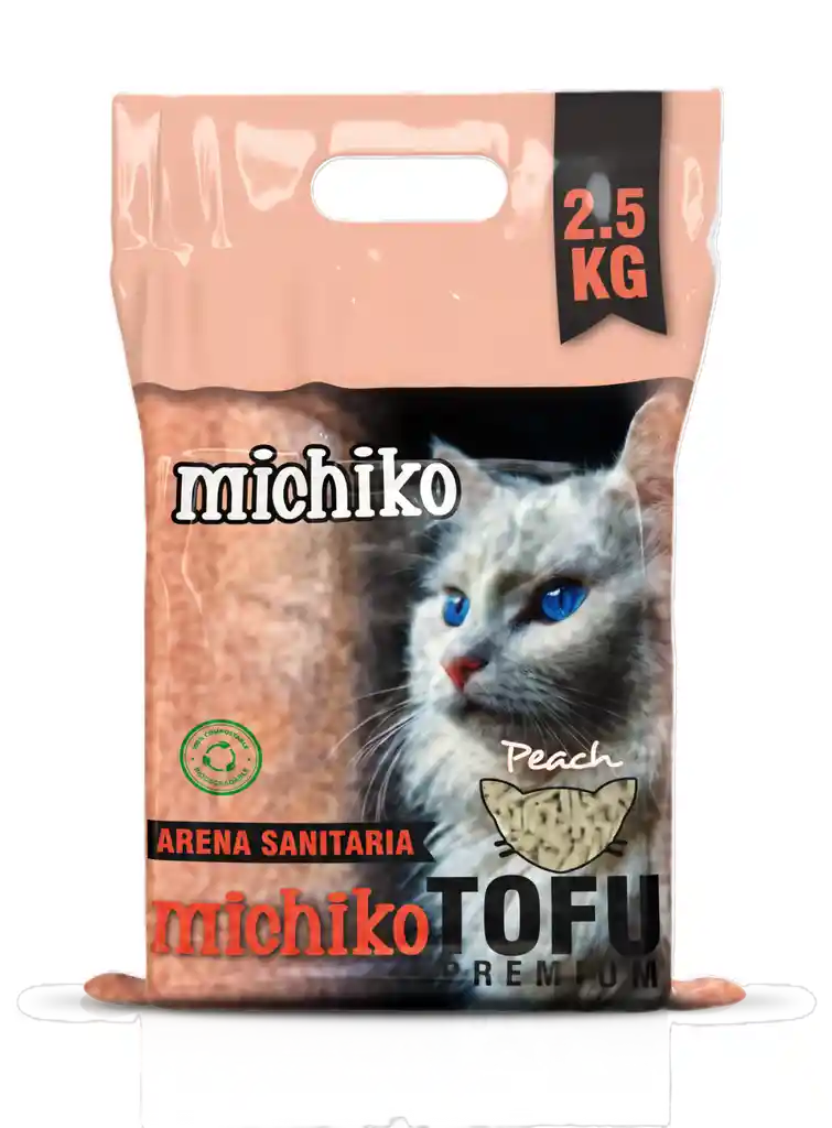 a arena para gatos MICHIKO TOFU PREMIUM está hecha de fibra de soja, que no es tóxica, no irritante y es respetuosa con el medio ambiente. Tiene las funciones de coagulación rápida, antibacteriano, eliminación de olores y mantenimiento del ambiente limpio. Por su textura suave es perfecto para las patas de los gatos. Después de su uso, al ser soluble en agua, se puede tirar directamente al inodoro.