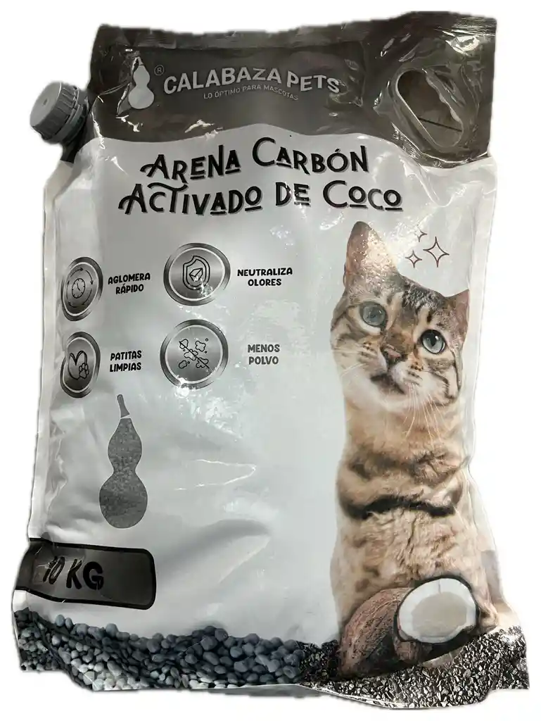 Arena Calabaza es aglomerante de fina granulación, absorbe y neutraliza inmediatamente los olores de la orina y heces de los gatos, gracias a las partículas de carbón activado que contiene. 99% libre de polvo.